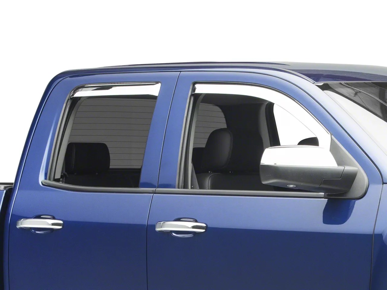 Ri tape-on chrome front and rear window visors. As a result anyone with basic mechanical expertise can attach these visors on their designated window channels with easeApplication. 2020 GMC Sierra 1500 Crew Cab Set of 4 Front and Rear. Tape-on mount style will let you install the product in minutes to the outside of your vehicle using pre-applied 3M adhesive mounting tape. Preventing wind and rain drops from getting inside your car these visors can make your journey more comfortable.