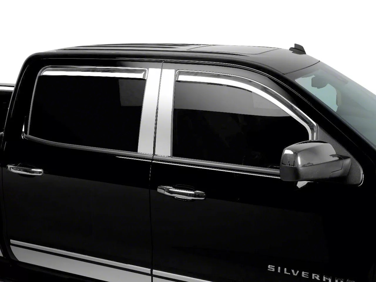 These Front and Rear Element Chrome Window Visors fit all 2019-2021 RAM 1500 Crew Cab models. Other than that I would definitely recommend them. Kia Forte 2015 Tape-On Element Chrome Front and Rear Window Visors by Putco. Tape-On Standard Ventvisor Chrome Front and Rear Window Deflectors 684101 by AVS.
